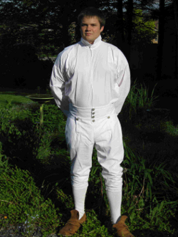 Drawstring waist and tie leg breeches $67.00.....French fly civilian breeches $98.00
